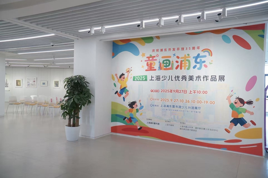 今年是浦东开发开放35周年。9月27日,上海浦东图书馆少儿分馆展厅迎来“童画浦东——2025上海少儿优秀美术作品展”,一场承载着纯真梦想与城市温度的艺术盛宴。这是少年儿童用画笔勾勒出的美好世界,纯真心灵对于城市、未来最真挚的告白。